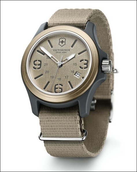 Très jolie création nous venant de la marque suisse Victorinox, d’ordinaire plus célèbre pour ses couteaux multifonctions que pour ses montres. Pourtant la Victorinox Swiss Army Original est tout à fait digne de l’horlogerie suisse. Très subtile dans les détails esthétiques, elle est composée d’un boitier de 40 mm de diamètre fait à la fois d’aluminium et de fibre de nylon. Le mécanisme de la montre peut quant à lui se vanter du fameux « Swiss made » affiché sur le cadran, tandis que le tout est résistant à l’eau jusqu’à 100 m de profondeur. Beige, kaki ou noire, on ne saura pas pour laquelle dépenser les 300 euros nécessaires à son achat lorsqu’elle sera disponible.